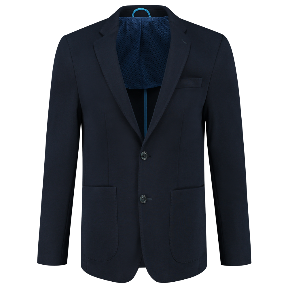 Zelfverzekerd, zakelijk én modieus: dat is wat deze business-outfit voor heren in één oogopslag laat zien. Een mooi colbert mag aan deze outfit niet ontbreken. Het Colbert Heren Business Sports is vervaardigd uit 70% Virgin Wol en 30% Viscose. Dit wil iedere sportieve zakelijke professional in zijn kast hebben hangen. Een zeer modern, jersey stretch extra slim fit Colbert met een zachte luxe afwerking. Zeer comfortabel en sportief dankzij de vele stretch die toegevoegd is aan de jog stofkwaliteit. Dankzij de sportieve uitstraling is dit item mooi om te dragen met de bijpassende pantalon, een mooi overhemd en een paar sneakers. De Business Sports items zijn verkrijgbaar in de kleur Blue.