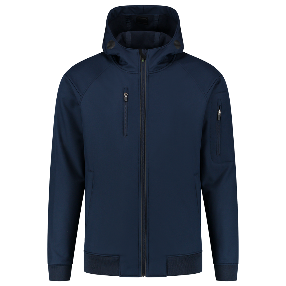 De duurzame Softshell Bomber Capuchon RE2050 heeft een sportieve en moderne belijning. De boord aan de onderzijde zorgt voor de moderne ‘bomber-look’ van deze comfortabele werkjas. De capuchon heeft verdekte koordstoppers en is niet afneembaar. De softshell is winddicht en waterafstotend. De reflective piping langs de ritssluiting maakt de professional extra zichtbaar.