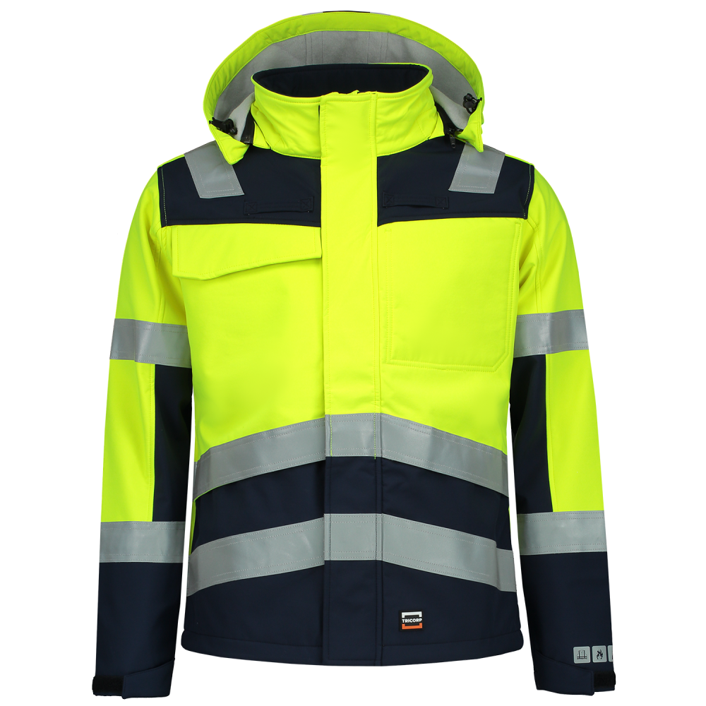 De Softshell Multinorm Bicolor uit de Tricorp Safety collectie is vervaardigd uit 60% modacryl, 38% Polyester en 2% andere vezels met een doekgewicht van 350 gr/m2. Dit product is EN ISO 11612 (bescherming tegen hitte en vlammen) en EN 1149 (bescherming tegen elektrostatische eigenschappen) gecertificeerd. Daarnaast heeft dit kledingstuk een hogezichtbaarheid bij dag schemer en nacht door de EN ISO 20471 certificering. Om doorbloeden te voorkomen raden wij aan om alleen druktechnieken te gebruiken die geschikt zijn voor softshell stoffen.