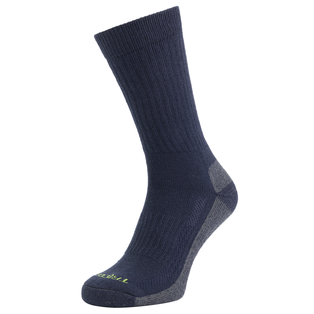 Circulair Textiel? Ja en niet zomaar: met 70% Closed Loop recycled A1 garen, volgens NTA 8195 circulair textiel. De sokken zijn gebreid met garen van gebruikte werkkleding. Na het verzamelen van afgedragen werkkleding is de kleding vervezeld en recycled tot nieuw garen. Dit garen is direct gebruikt voor deze werksokken. Er worden geen extra verfstoffen meer toegevoegd. Als tweede leven mag de sok verder als spaarpot of weer terug de textielketen in. Zo blijft de voetafdruk laag en blijven de grondstoffen binnen de textielketen.
